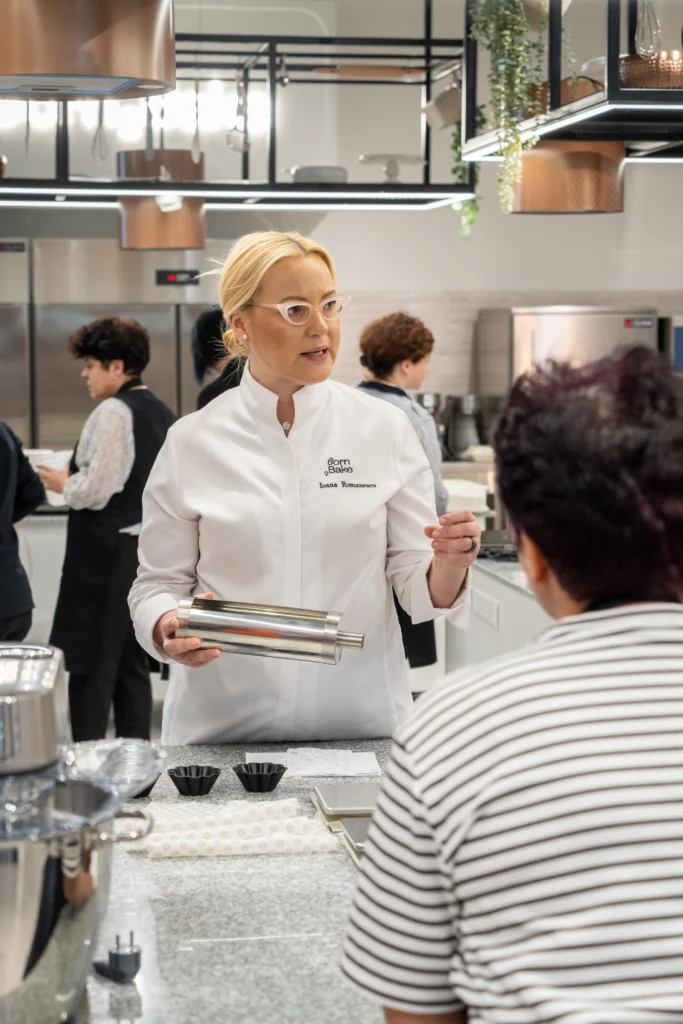 Mergem beyond recipes și punem accent pe învățarea de tehnici care să ajute cursanții să dezvolte apoi produse proprii, să înțeleagă the meaning of ingredients și procesul care se întâmplă în spatele dezvoltării unui desert.